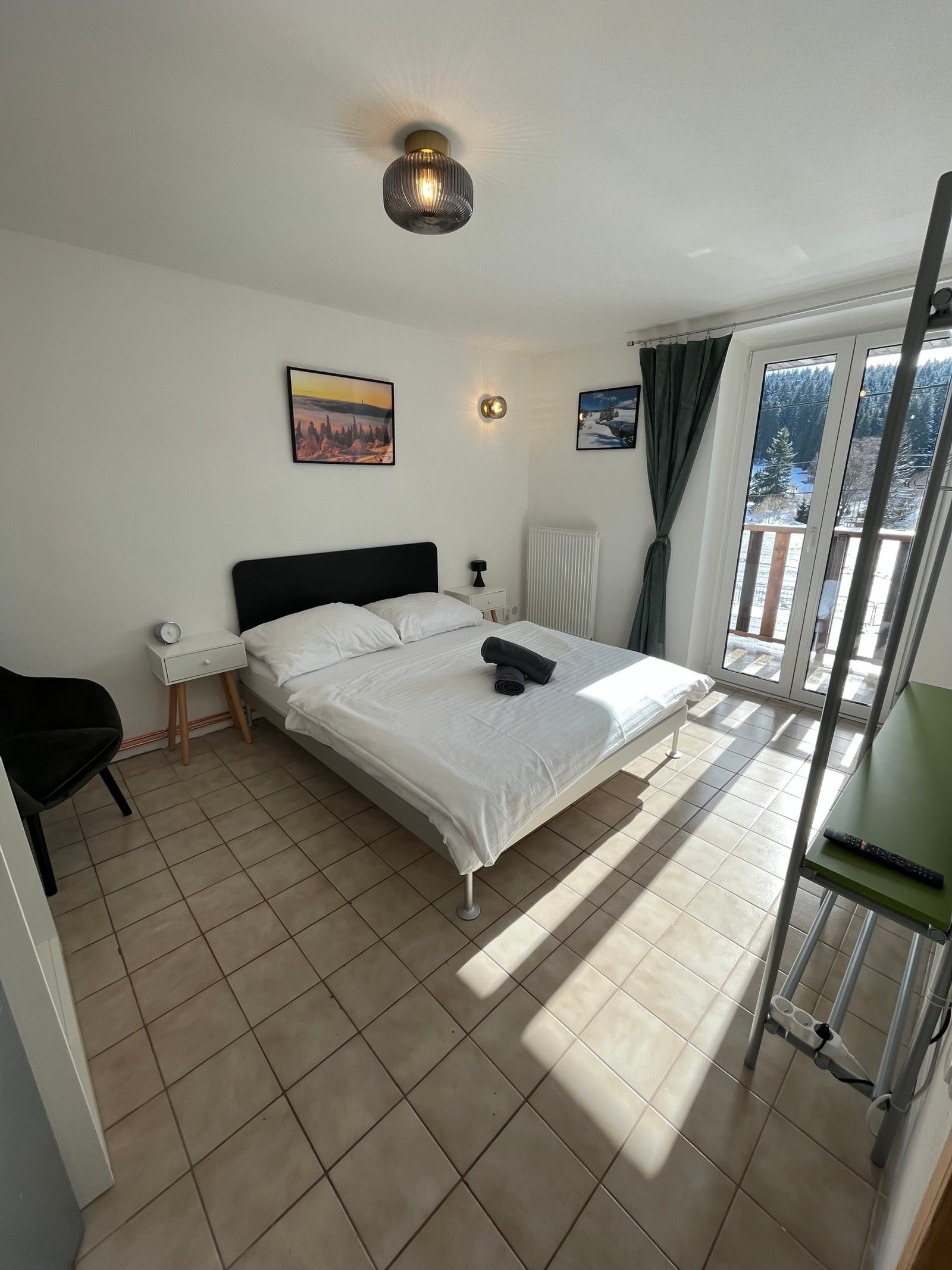 2x manželské dvoulůžko, terasa s výhledem na sjezdovku, moderně vybavený pokoj ,vlastní koupelna/wc, TV na pokoji, společná kuchyň, WiFi